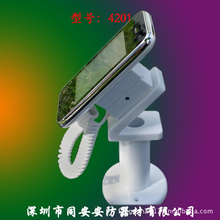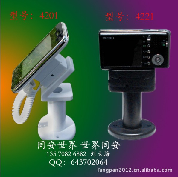 产品功能: 防盗手机展示架,通过拉线器连接手机,保障手机安全。 使用方便,只需将展示架贴在展示柜上,将展示架和手机用3M胶固定即可。 是纯展示产品,无需配置主机,广泛应用于各种消费类电子产品卖场、产品展览会、博览会的产(样)品展览柜、电子数码商场产品柜、手机专柜等在内的防盗安装,能有效的保护各类数码产品、电子礼品如手机、MP3、MP4、耳机等小型电子陈列品,以及高档工艺礼品、饰品等,以防备产品丢失!