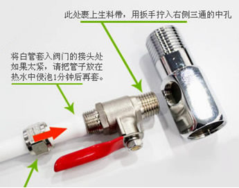 作用:连接4分进水管与过滤器(2分水管),使得没有预留过滤器进水口的家庭也能轻松安装过滤器。