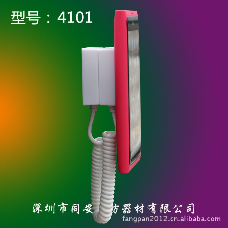 产品功能: 防盗手机展示架,通过拉线器连接手机,保障手机安全。 使用方便,只需将展示架贴在展示柜上,将展示架和手机用3M胶固定即可。 是纯展示产品,无需配置主机,广泛应用于各种消费类电子产品卖场、产品展览会、博览会的产(样)品展览柜、电子数码商场产品柜、手机专柜等在内的防盗安装,能有效的保护各类数码产品、电子礼品如手机、MP3、MP4、耳机等小型电子陈列品,以及高档工艺礼品、饰品等,以防备产品丢失!