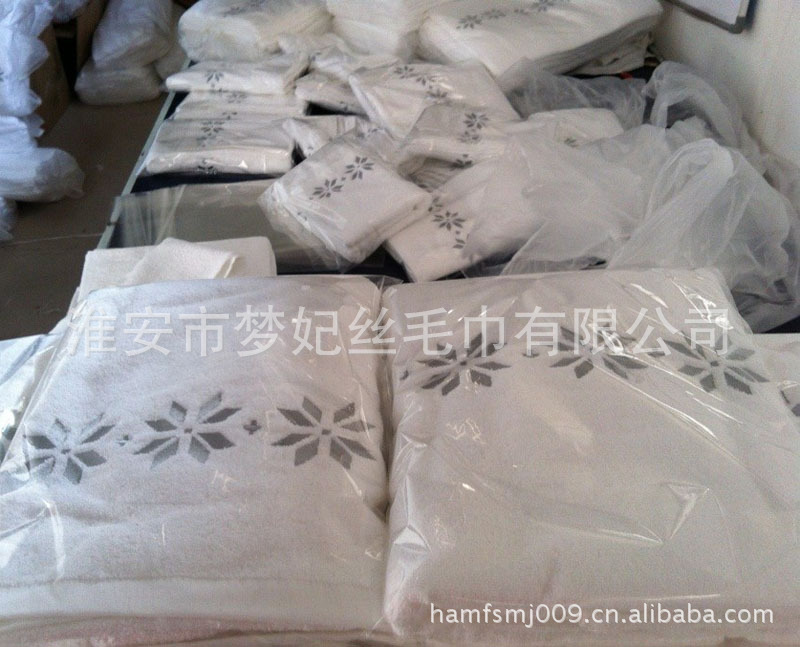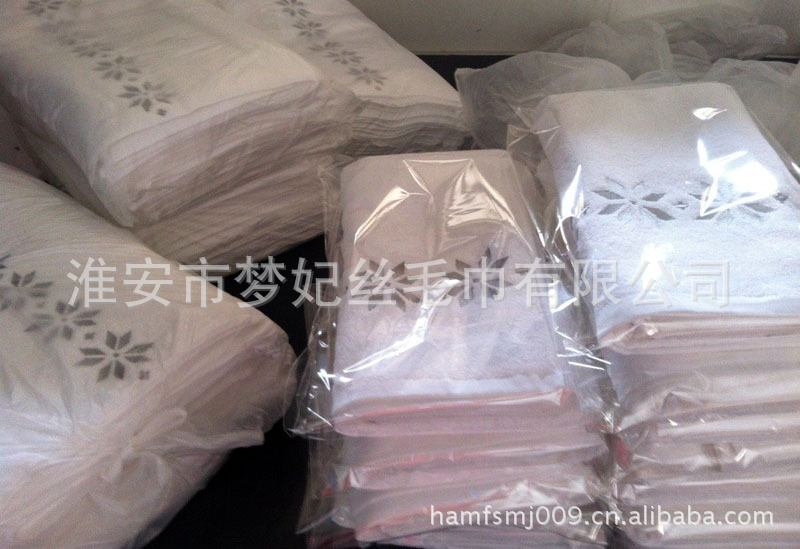 淮安市梦妃丝毛巾有限公司是一家专业从事高档、精品毛巾类产品织造的现代化生产企业。产品原料全部选用上等一级100%纯棉精制而成,经久耐用、纯白度高、手感好、色泽鲜艳、吸水性好、花样丰富、不褪色。公司主要产品有:方巾、面巾、浴巾、地巾、毛巾被、枕巾、沙滩巾、地垫和浴袍等上千个品种和各种规格,是一个集科研开发、生产加工、市场营销为一体的企业实体。