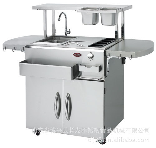 qq:1626006213 电话:05432453839 山东长龙不锈钢食品机械有限公司生产的不锈钢操作台使用优质不锈钢材料制作,底部安装有尼龙脚轮,推动方便。