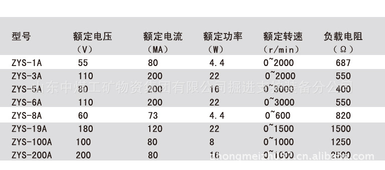 ZYS-A永磁式直流测速发电机产品参数