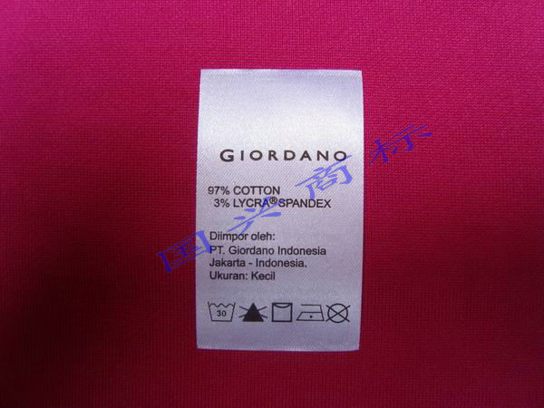 洗水唛,其实也是洗水标,南方人称为洗水唛,北方人称为洗水标,印刷可选择活版印刷,可选择丝印,材料分为尼龙带(植物涂层布)丝带(緞带)可根据客人需要来选择,我司专业生产15年,我司实体工厂可按客需要设计生产,也可代客设计生产。主要用在服装,箱包,礼品,床上用品上是各大服装厂的最佳供应商。