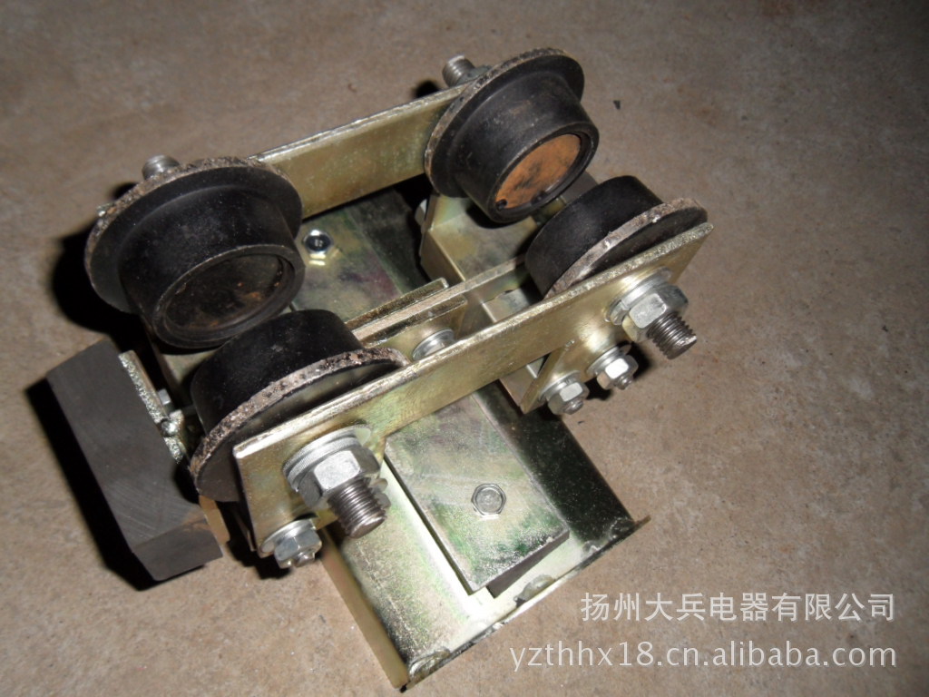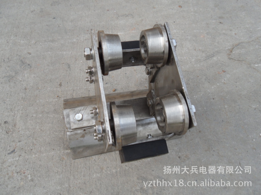 HC型系列工字钢电缆滑车装置滑轮 有铸钢滑轮 不锈钢304材质滑轮 用于移动供电机械在移动中电缆的悬吊与移动,已广泛应用于各类起重机械中。工字钢电缆滑车该装置具有结构坚固。移动灵活。安全可靠等优点。GHC型滑车由牵收引滑车、电缆滑车、终端滑车三部分组成,牵引滑车跟随移动机械导缆(牵引)装置,每个移动机械配1个,随移动机械往返运行。中间电缆滑车将电缆悬挂在工字钢轨道范围内随牵引滑车移动,两端并装有缓冲撞头,滑车视移动长度不同而定数量。终端滑车固定在工字钢导轨末端,一般每个移动机械设置1个。工字钢电缆滑车该系列滑车滑轮,如用户采用12#、14#、16#或更大号数工字钢,可在订货时注明,本厂可成套供货