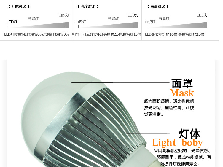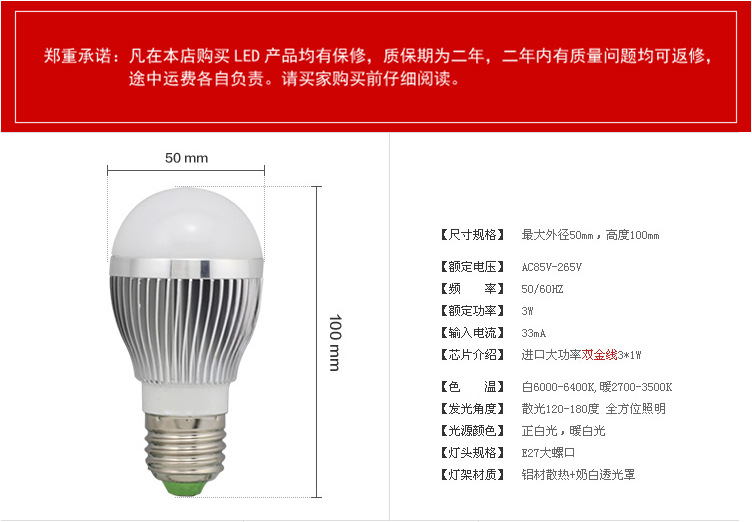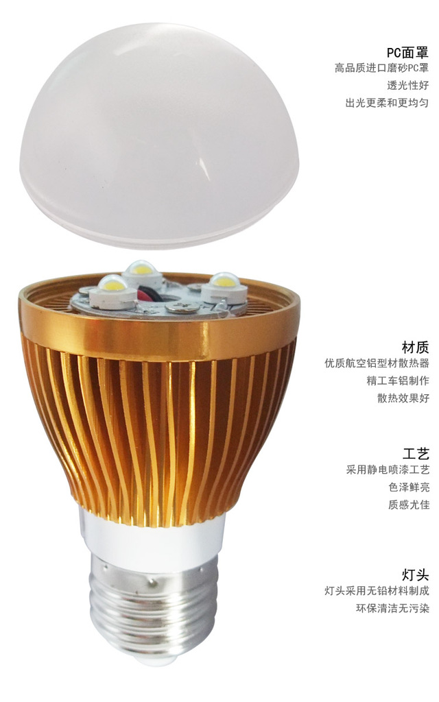 厂家直销 LED球泡灯 节能灯 E27 大功率 3W