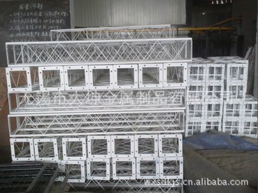 桁架规格:20*20,25*25的方管钢管桁架,有镀锌,喷漆,喷塑等3种式样,且我公司生产的方管桁架为加强型桁架,自带接头,不需要另外配接头,解决了安装繁琐,接头不易损坏等问题,一般20规格桁架为小桁架,安全跨度为8米。