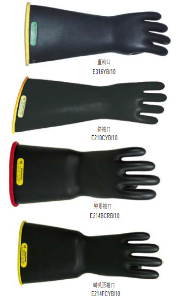 2. 尺寸和袖口:ASTM1到4级的绝缘手套有356mm,406mm,457mm三种长度可供选择。