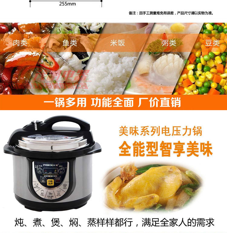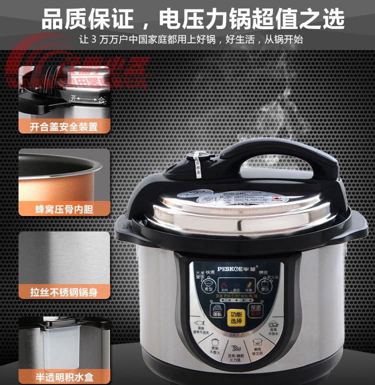 电压力锅不粘内锅,不粘食物,不冒气,不溢汤,干净、卫生又环保,较电饭煲节电30%以上,比高压锅节约能耗50%以上。