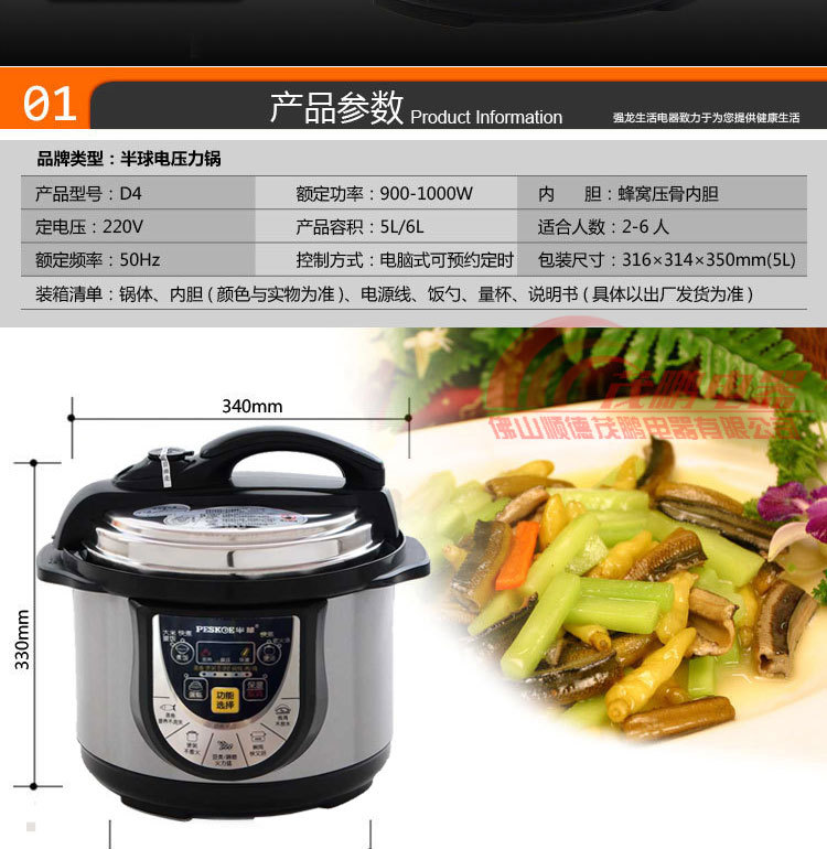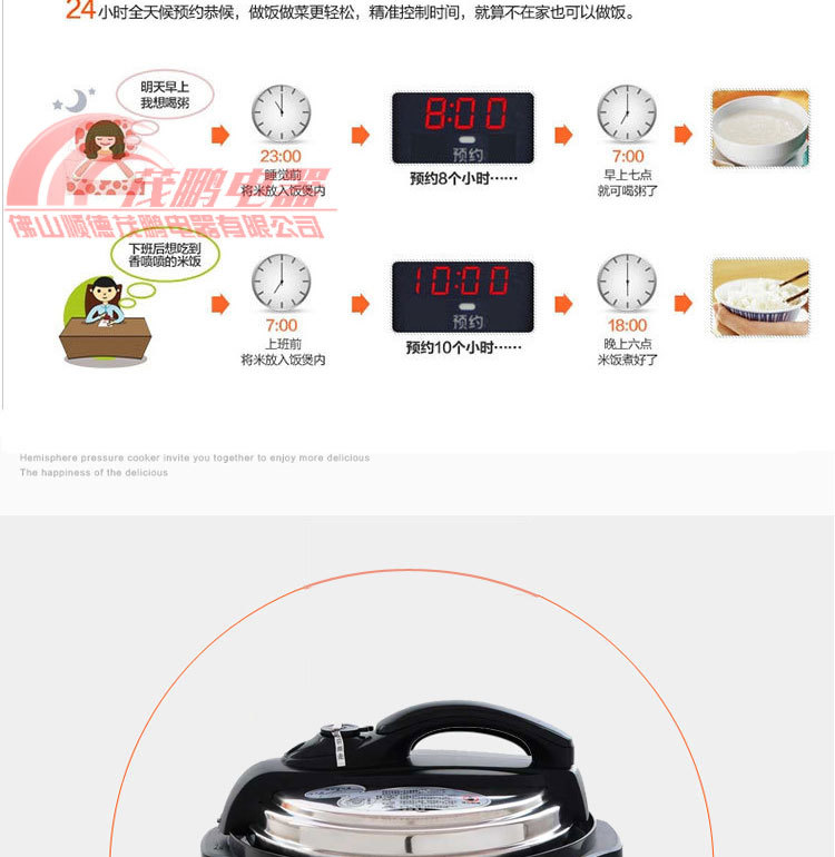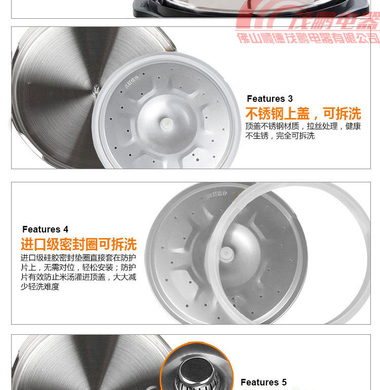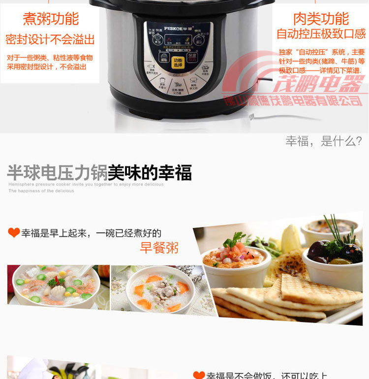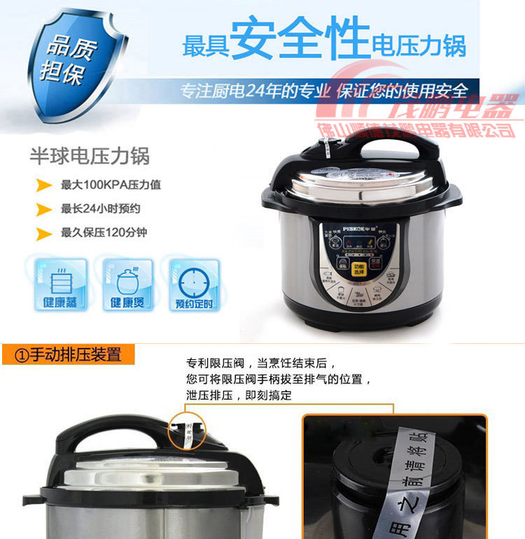 限压保护:锅内工作压力保持在80-100Kpa范围内,超出压力自动断电,保证安全放心使用。