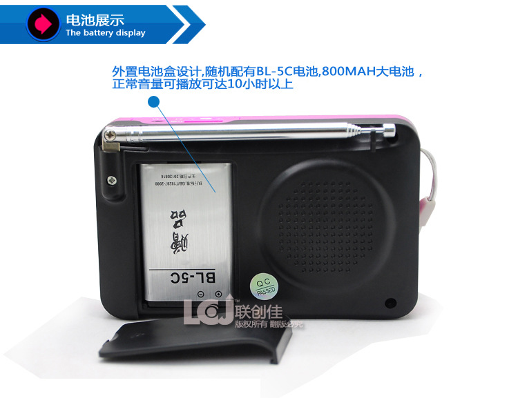 4、800MAH大电池,正常音量可播放可达10小时以上