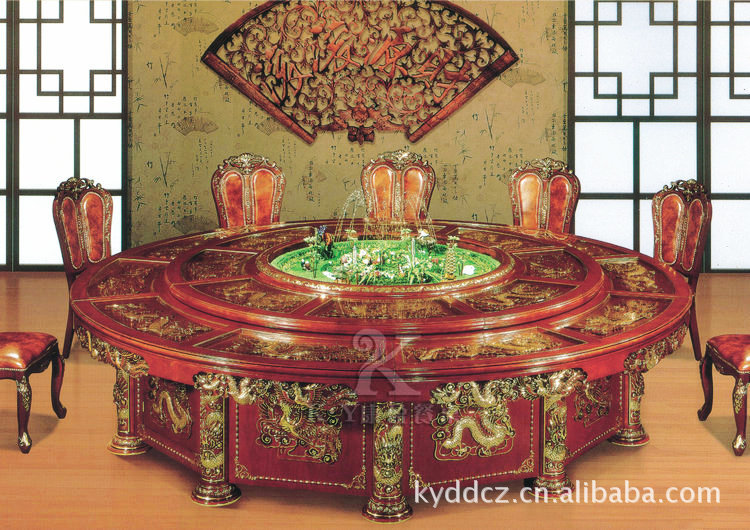 厂家直销 酒店电动餐桌 酒店餐桌 大圆桌 树脂雕刻 仿古 KY-05