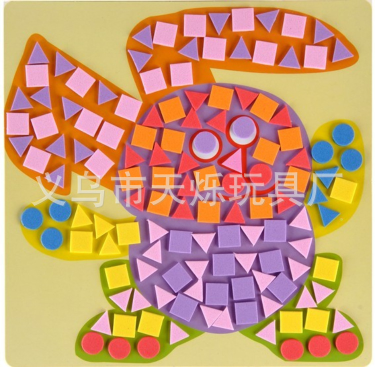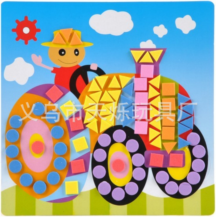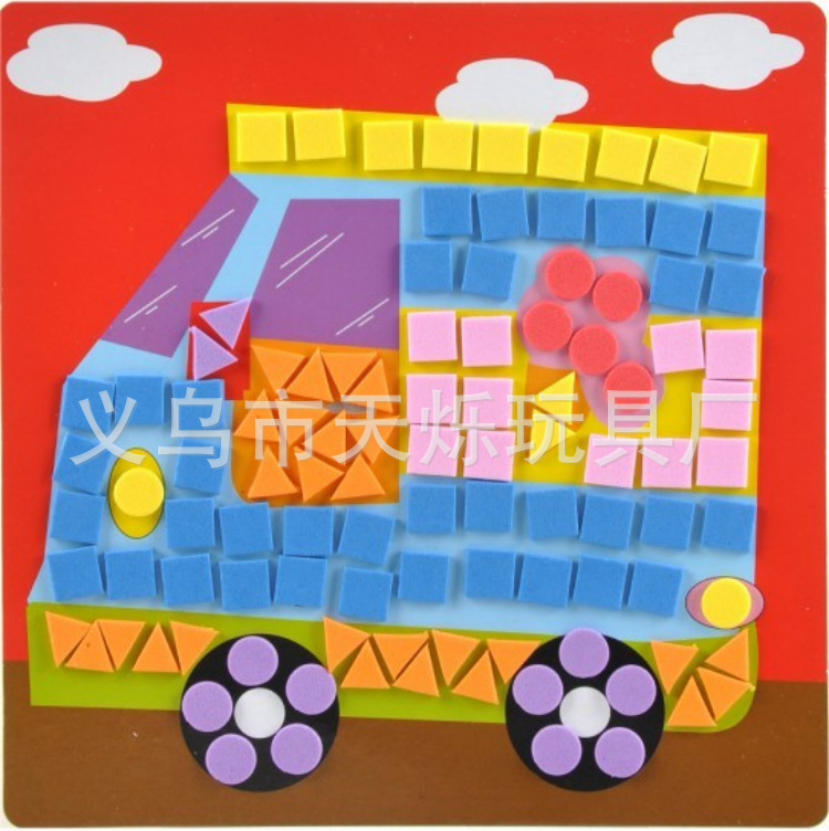 欢迎来到我们工厂,我们是一家专业的EVA立体粘贴画厂家,所以我们的产品均为厂家直销价格。我们不怕货比三家,因为我们的立体粘贴画质量可以保证,(立体拼图的质量可以从产品的颜色,使用的油墨以及制作工艺方面观察。)所以我们产品绝对让您售后没问题,而且回头客人也会增多。我们生产的粘贴画色彩艳丽,材料环保安全,深受小朋友的喜爱,是儿童生日礼物,馈赠礼品的最佳选择。