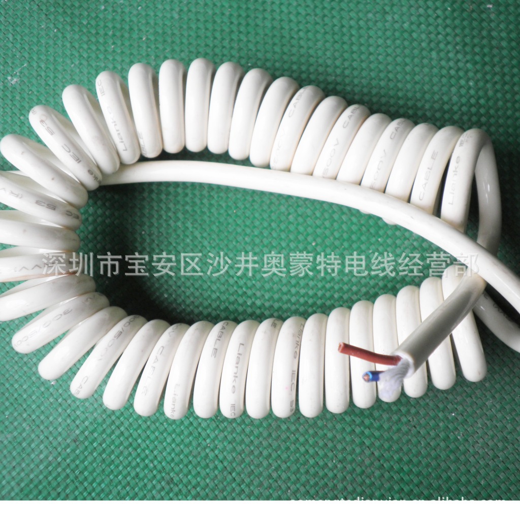 弹簧线是一种利用可伸缩性来工作的设备连接线。一般用TPU电缆绕制而成。用以控制可移动设备运动的电连接、可在短时间内迅速回弹,广泛用于汽车,机器,仪表等可移动设备中。按方向分,主要有左方向螺旋弹簧和右方向螺旋弹簧。按材质分:主要有PVC弹簧线,PUR弹簧线和橡胶弹簧线;PUR弹簧线具有阻燃,耐油,耐酸碱,耐低温,防紫外线,耐磨,抗水解等特效作为弹簧线的首选材料越来越广泛的被运用。