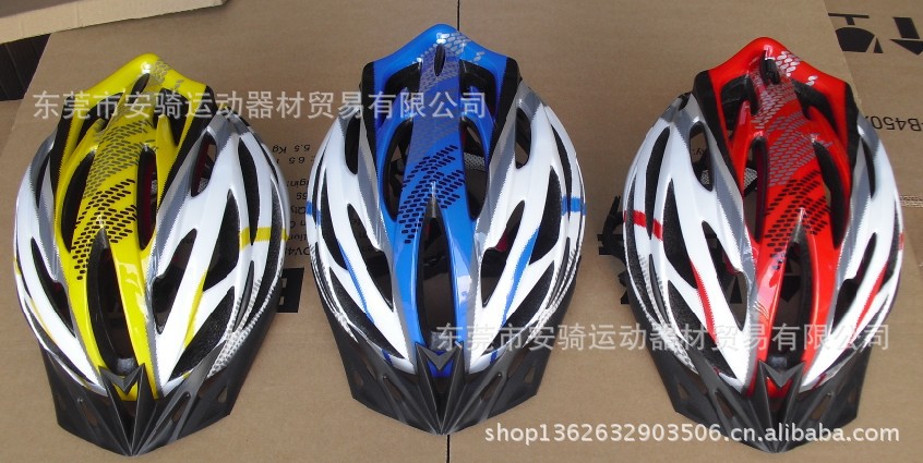 一体成型高技术头盔,一个尺寸(均码):L(54-62CM)6种颜色:蓝碳纤、红碳纤,黄、桔、红、蓝,热压式内衬,旋转调节器,31孔,重量:均码(252-289g)