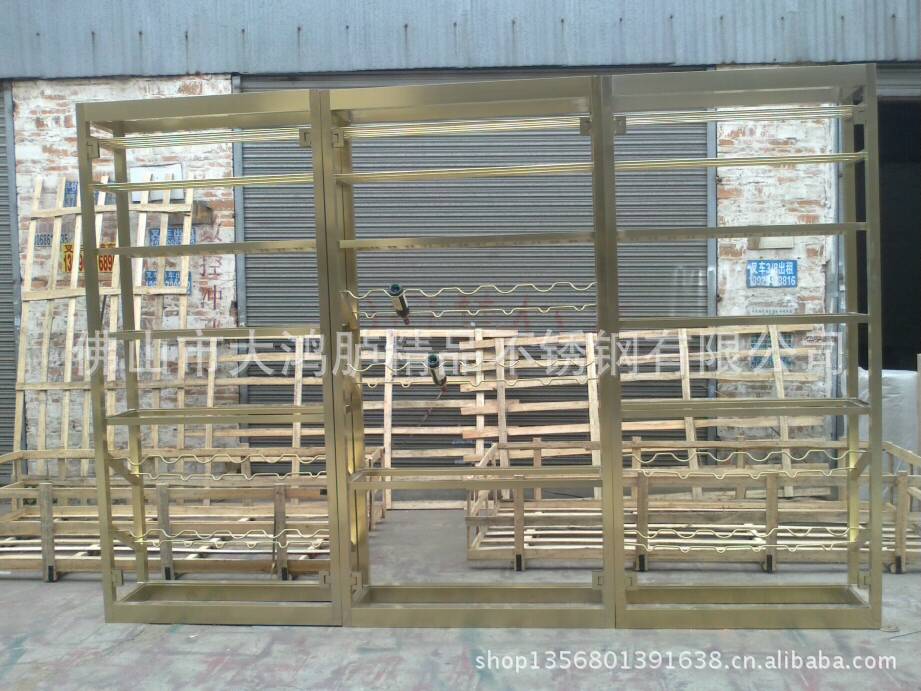 来图加工不锈钢红酒架,香槟金不锈钢红酒展示柜,不锈钢恒温酒架定做,豪华不锈钢葡萄酒架子制作,设计师用古典与现代西方红酒架工艺来表现奢华与大气的不锈钢精品架子,