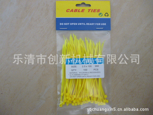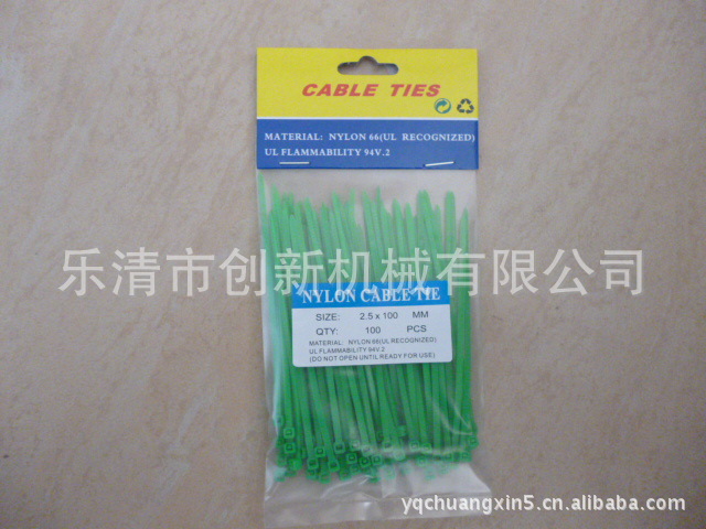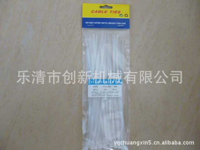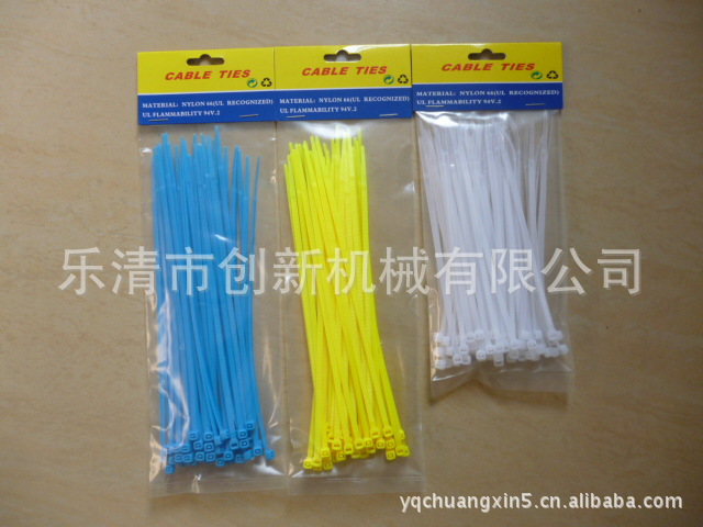 尼龙扎带也称为:扎带、扎线、束线带、扎线带 尼龙扎带广泛应用于电子厂、捆扎电视机、电脑内部连接线,灯饰、电机、电子玩具等产品内部线路的固定,机械设备油路管道的固定,船舶上电缆线路的固定,自行车整车包装或捆绑其他物体,也可用于农业、园艺、手工艺品等捆扎物品。还可广泛用于圣诞礼品厂、电子厂、线材加工厂、电线电缆、玩具厂、喜庆节日、 文具百货、生鲜超市、民居日用、电工电器、接插件等物品的捆扎。尼龙扎带具有绑扎迅速、绝缘性好、自锁禁锢、使用方便等特点,能够有效提高工人的工作效率,降低生产成本。 尼龙扎带采用UL认可尼龙PA66(Nylon 66)材料注塑制成,防火等级94V-2,具有良好的耐酸、腐蚀、绝缘性,不易老化、承受力强。操作温度为-40℃到+85℃ 你好,我们是乐清市创新机械有限公司,我们供应尼龙扎带。 乐清市创新机械有限公司是一家专业生产和销售各种配线器材的企业,主要有各种高品质的尼龙扎带、钢钉线卡、接线端子、压线帽、电缆螺旋接头、配线槽、电线标志号码管、缠绕管、束带固定座 (定位片)电线固定夹、冷压端子等电子类塑料附件;产品广泛应用于电力、机床、工程安装、包装、机械行业、自动化设备及通讯、电脑电气等行业。其中尼龙扎带广泛应用于其他各种需要进行捆扎的场合。作为一种理想的捆扎材料,尼龙扎带给我们的日常生活带来了极大的方便。服务热线:15825688735