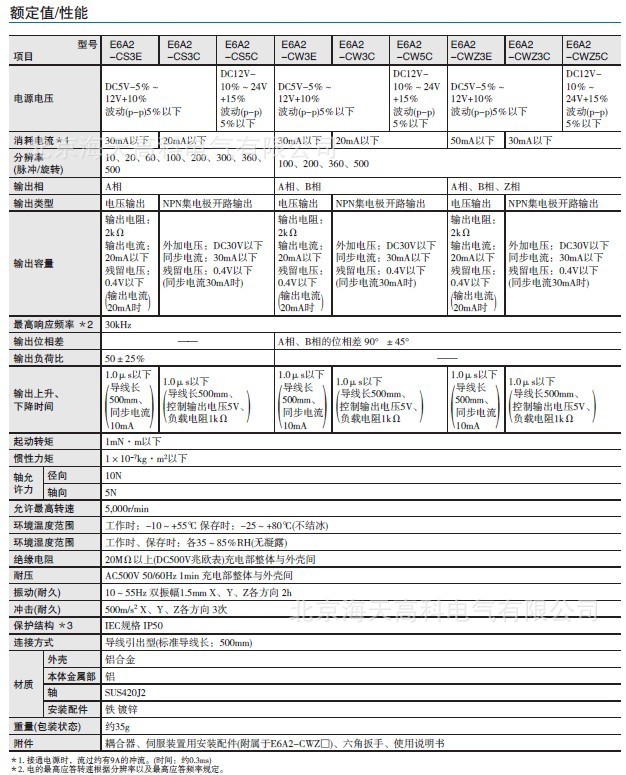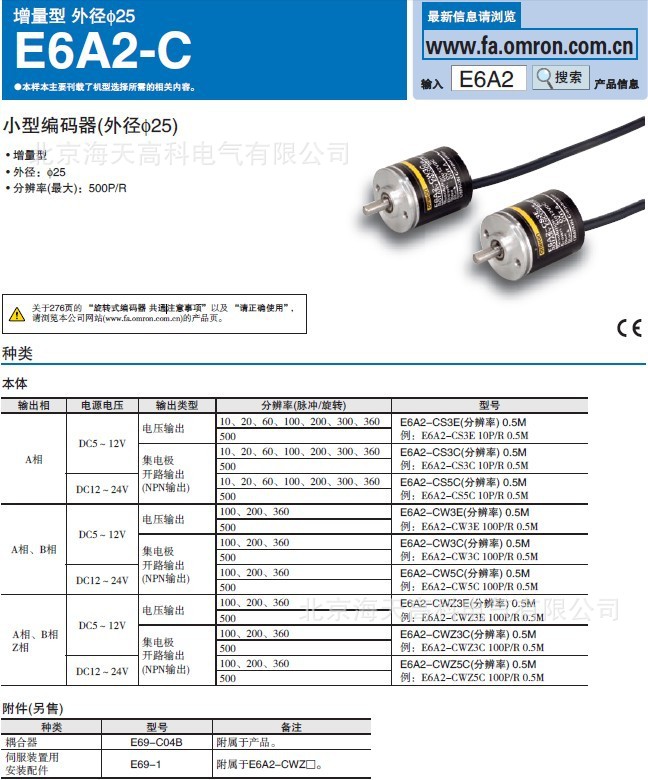 现货原装欧姆龙OMRON增量型旋转编码器E6A2-CW5C 100P/R 0.5M