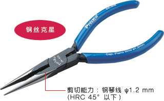 . 尖端有细粗牙夹持力强并可剪切钢琴线 ψ1.2 mm (HRC 45°以下)