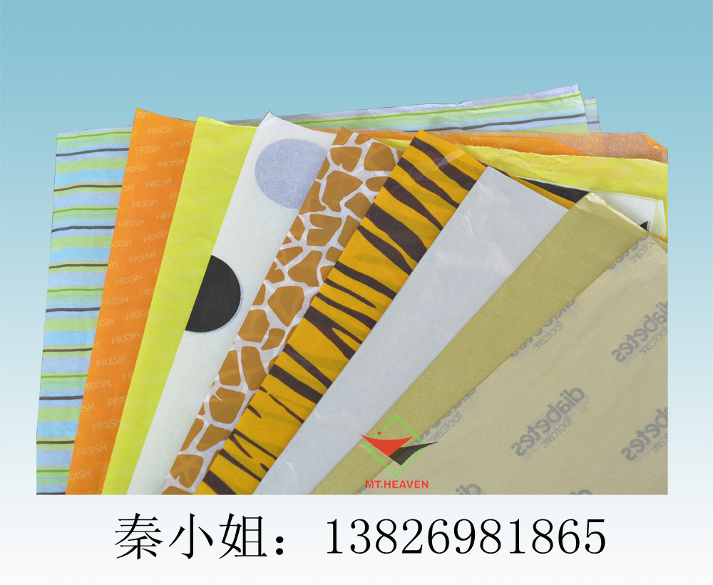 一:我司可根据客户需求,采用优质纸张,印刷任意颜色(参国际标准色卡)的字母及各种精美图案,可四色印刷,规格自定,质量稳定,价格实惠、发货及时,欢迎广大客户前来订购!二:印刷拷贝纸是高级包装用纸,纸质柔软、轻薄、光洁平整、不会掉屑、拉力强、易折易裁、无气味,具有防潮透气之功效;三:主要用途:鞋子、礼品盒、服装、皮具、印刷制品、箱包等物品的包装,可大大地提高产品的包装档次及品位!