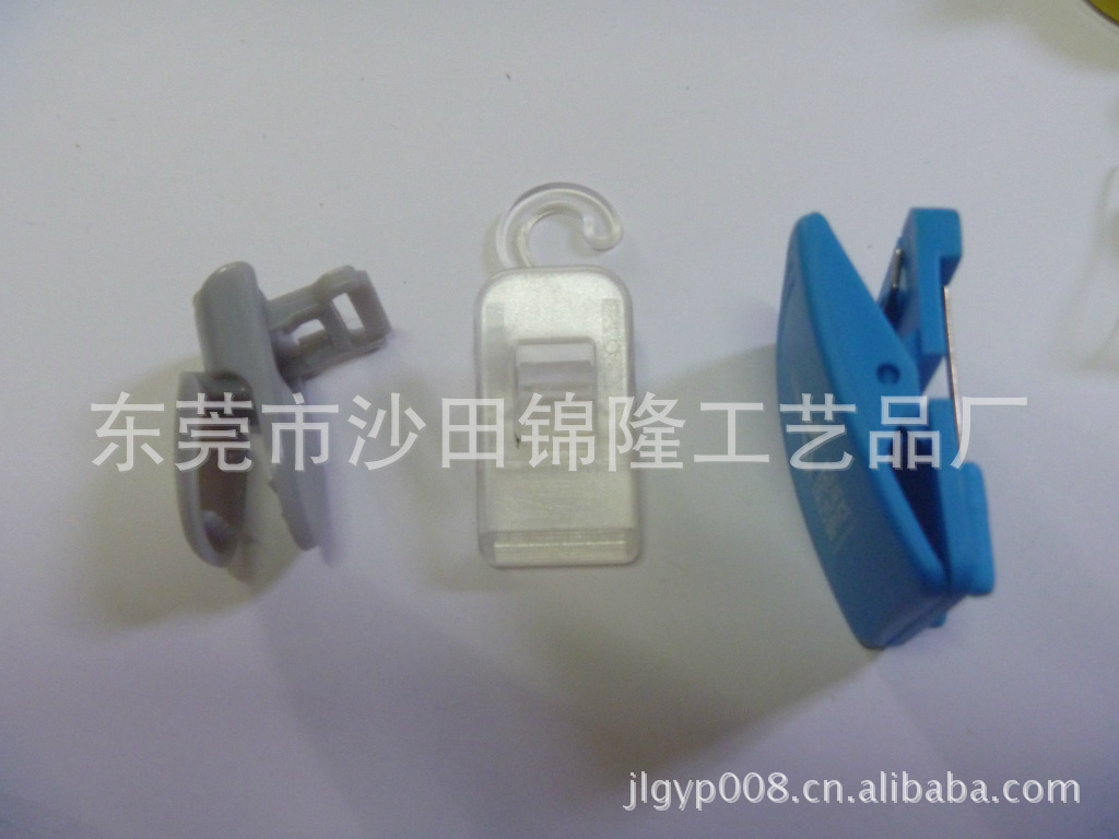 供应各种各样的夹子、塑料吊夹、塑料夹子、翻盖夹、胶水夹、吊扣、鸭嘴夹.夹子固定性强,可牢固的夹住衣物等物品,同时也可配上胸针一起使用,外形美观轻巧,可随意开启,方便实用!