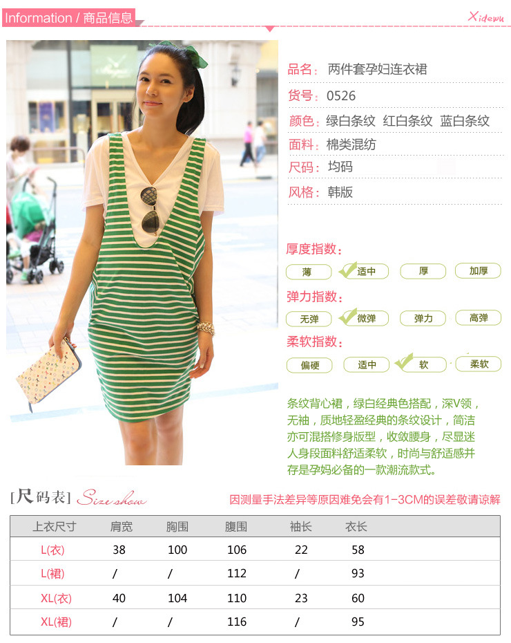 2013新款孕妇装V领 春夏装韩版条纹两件套装孕妇裙韩国连衣裙0526