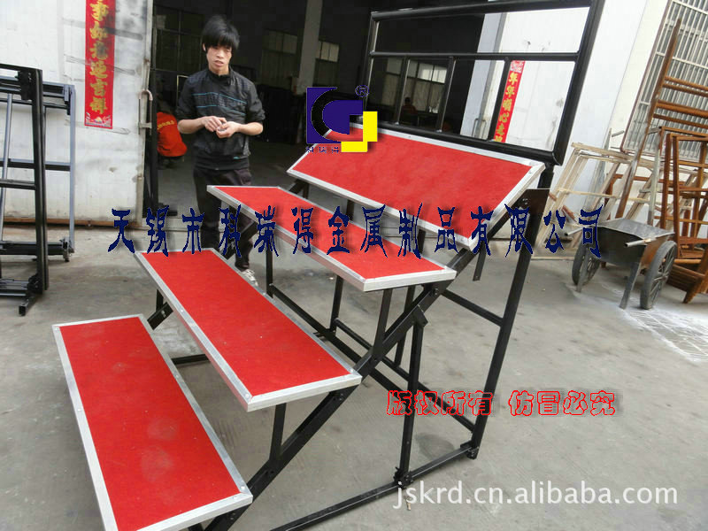 (2)主体支架采用50*25*2方管;台架有配件使台架锁定,方便变动(3)整个舞台采用快速折叠法,轻松折叠,底部带有3寸聚氨酯防滑万向轮,可任意移动,方面挪动。