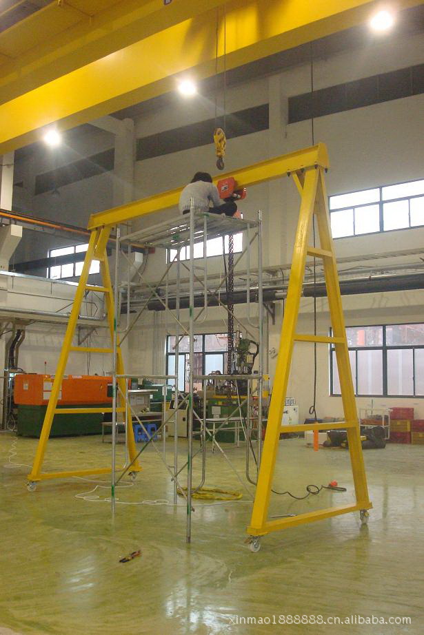 汽车上货物的装卸,汽修车间吊装发动机大件等。起重小龙门架主要有二种规格:一是在地面上全方位移动的龙门架,带刹车承重轮可在地面上移动,适合在地面上起吊物品;二是用钢轨固定安装在楼板面或梁上,通过电动或人力葫芦,实现起重机械化。可减少人力,降低生产运营成本,提高工作效率。我司可根据客户的现场情况定做不同的产品。移动小龙门架吊运葫芦可选用手拉葫芦或电动葫芦,产品实用性强。畅销珠三角,深受厂家欢迎。、