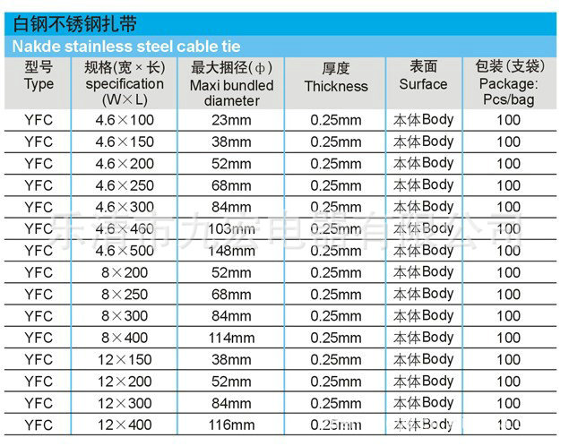 主营产品:不锈钢扎带、喷塑不锈钢扎带、包塑不锈钢扎带、电缆扎带、尼龙扎带、船用扎带、不锈钢盘带、不锈钢绑扎带、冷压端子、电缆接头、缠绕管、热缩管等