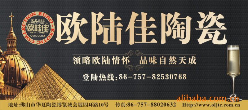 欧陆佳陶瓷简介:欧陆佳陶瓷由中国纺织物资(物资)总公司的下属控股子公司-广东佛山欧陆佳陶瓷有限公司生产出品。欧陆佳公司是一个综合性的商贸企业,除经营羊毛、化纤、染化料业务外,还专业生产、经营欧陆佳牌系列强化木地板、欧陆佳瓷砖、欧陆佳布艺、欧陆佳壁纸。公司自成立以来,经营规模不断发展扩大,年营业额由1998年的4300万元增至目前的5.5亿元,实现了连续翻番。