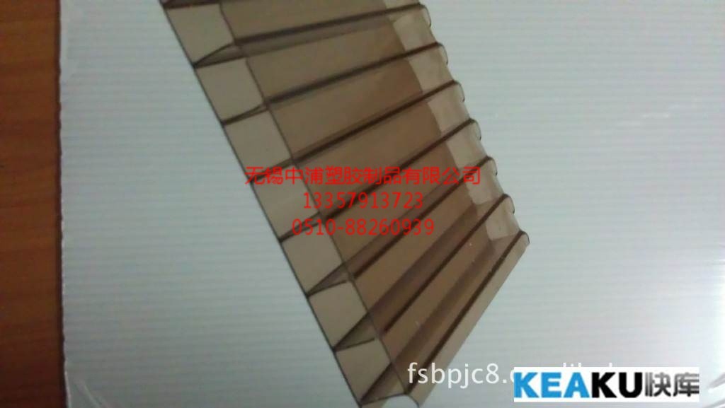 pc阳光板:阳光板广泛应用于公用,民用建筑的采光顶棚,高速公路隔音,现代花房采光材料,另用于广告底板材料,浴室门等,具有良好的抗冲击性,隔音,采光,防紫外线,阻燃等优点。是重量轻和高强度的完美协调,而且材料本身呈透明如水般的清澈。它被广泛应用于体育场、公用建筑、工业建筑、民用建筑、现代温室及室内装饰展示等,并为这些场合提供高质量低维护费用的采光解决方案。 板透明板材透光率可达80%。