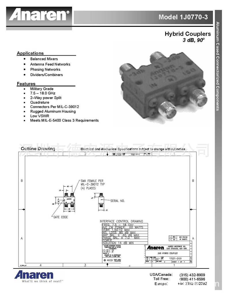 专业代理分销ANAREN射频定向耦合器XC0900P-10S