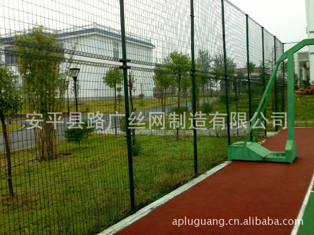 浸塑丝径:5.0mm 网格尺寸:50mm X 180mm 立柱尺寸:48 mm X 2.5mm 网片尺寸:2.3m X 2.9m 加强筋四道 网格:50X50mm 产品优点: 合适的折弯,造就了此种产品独有的美观效果,而且表面采用多种颜色的浸塑处理,如黄色,绿色,红色,立柱与网片不同颜色的搭配更是令人赏心悦目,同时此种产品多采用带底盘立柱,安装只需打好膨胀螺栓,非常的快捷。 适用场合: 铁路封闭网、生活区围栏、场区围网、开发区隔离网等等。