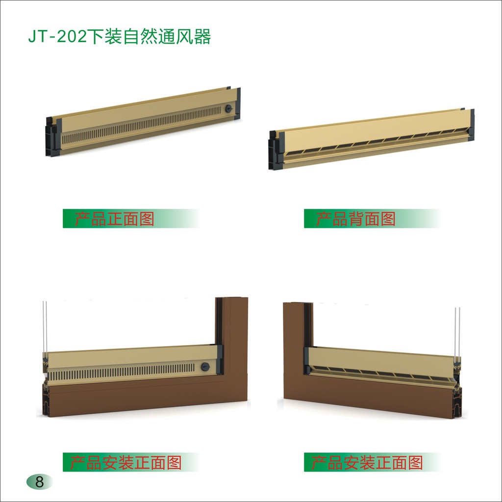 使用断热型材,隔热、隔音效果更好。旋钮开关;直线进风设计,风阻小。进风口设置有防虫铝网;合理的设计,使用方便,清洗容易。可适用于推拉门窗及平开门窗的上下安装。