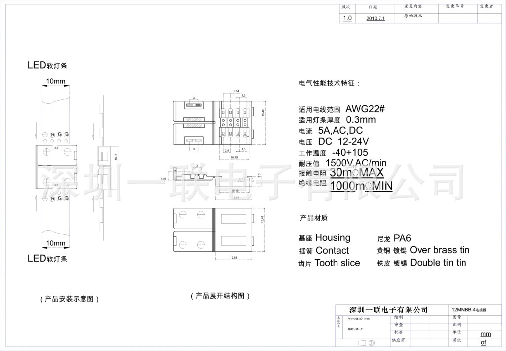 感谢您选择我司产品,本品为10MMBB-4灯条连接器成品,适用于5050彩色灯条的双边对接,免焊接,可为客户节省焊接时间,减少整个灯光系统的不稳定因素,同时让客户省出时间去赢得更多的财富。产品优点:方便快捷、牢固稳定、质优价廉。让您买的放心,用得安心,我们定将竭诚为您服务。谢谢!