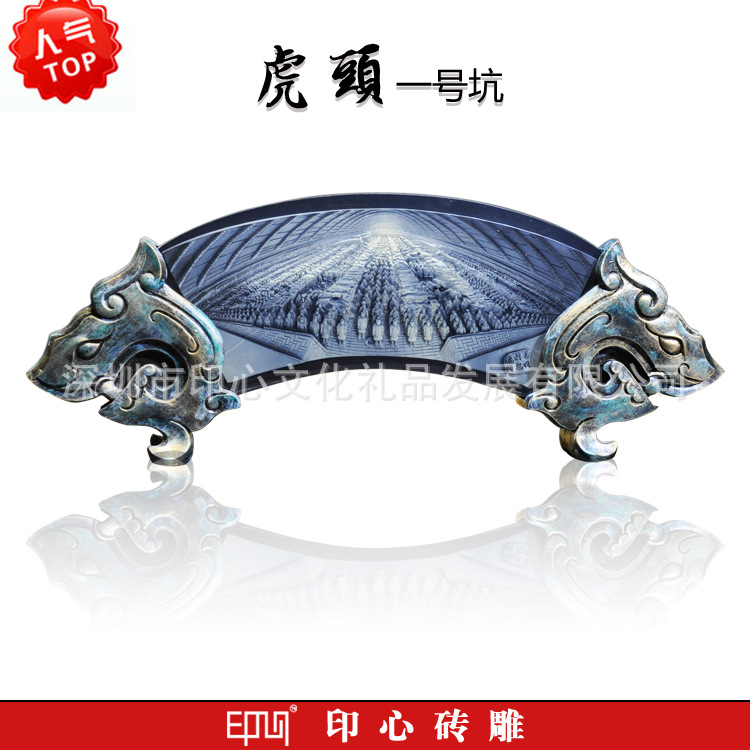 整个产品运用中国传统的瓦当效果,利用敦厚、粗旷、朴质的手法,将画面及文字牢固永恒的记录下来,承载着中华民族厚重的文化蕴涵。