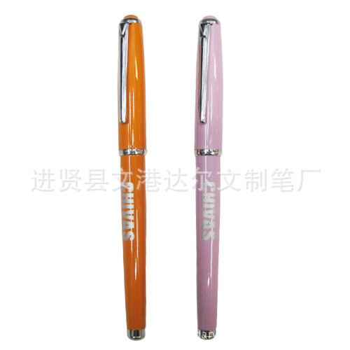 ⑵水性圆珠笔 又称宝珠笔或走珠笔。宝珠笔的笔杆、笔套用塑料注塑成型的叫全塑宝珠笔;笔套用不锈钢材冲压磨制成的叫半钢宝珠笔;笔杆、笔套全用不锈钢制造的叫全钢宝珠笔。全塑型的基本上都是一次性使用,即墨水用完就报废了;半钢型和全钢型的多采用可更换笔芯式结构。宝珠笔的笔头分为炮弹式和针管形两种,分别采用铜合金、不锈钢或工程塑料制成。球珠则多采用不锈钢、硬质合金或氧化铝等材料制成,中字迹球珠直径为0.7毫米,细字迹球珠直径为0.5毫米。储水形式分纤维束储水和无纤维束储水两种。墨水的色泽有红、蓝、黑、绿等。宝珠笔兼有钢笔和油性圆珠笔的特点,书写润滑流畅、线条均匀,是一种较为理想的书写工具。