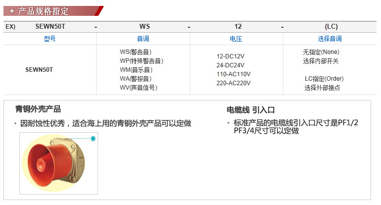 SEWN50T带接线端子型 重负荷 信号扬声器Ø180mm Max.120dB