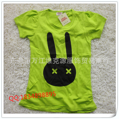 潮妞童装批发 夏季新款圆领女童短袖T恤 时尚个性图案女童T恤