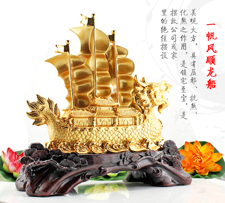 一帆风顺龙船,美观大方,具有压邪、抗煞、化煞之作用,是镇宅至宝,是摆放公司或家里的绝佳摆设。送礼更是大方得体的高贵礼品,而且还可以增强公司或家中的财运!造型逼真,神韵生动,有勇往直前和向上腾飞的雄伟气势,摆放在室内显得十分大气,愿您早日扬帆搏浪,驶向辉煌,寓意深刻,独具匠心。作为礼品用来作用朋友公司开业馈赠或酒店摆放均是最佳选择!爱好收藏的朋友亦可摆放在自己家中,高贵不贵,且很庄重的一件装饰品。