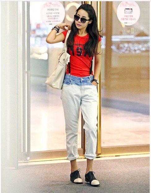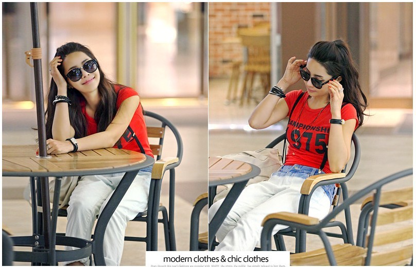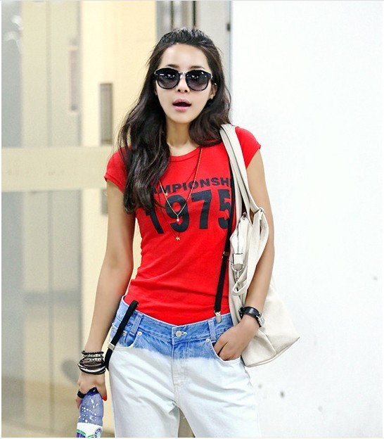 【面料】:单面平纹棉。(面料柔软舒适,)此款为宽松型,【李孝利T恤,百搭风格,是青春时尚、