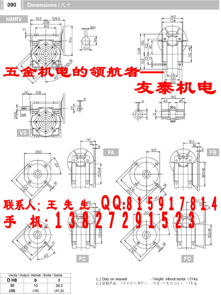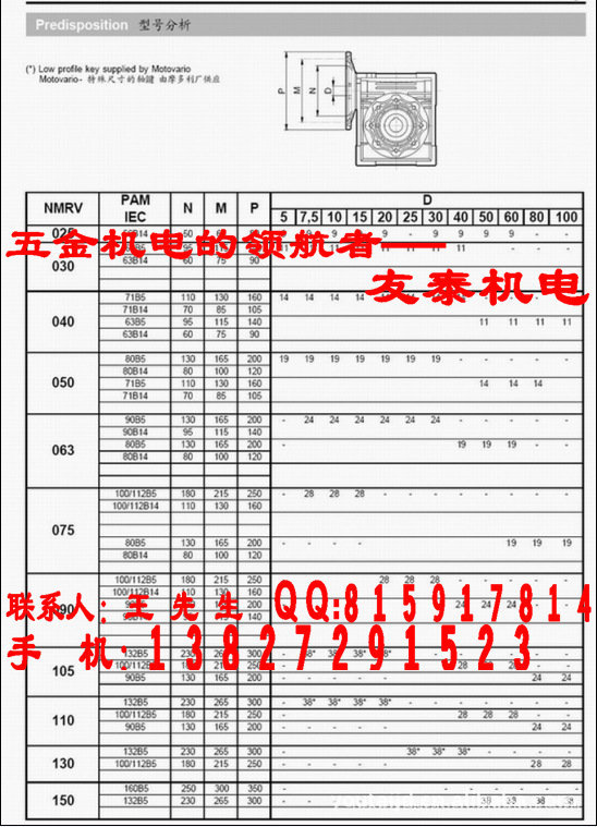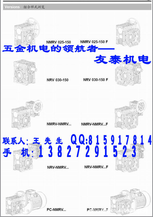 NMRV蜗轮减速机:型号:025 030 040 050 063 075 090 105 110 130 150其中025-090为铝合金外壳,110-150为铸铁外壳;减速比:1/5 1/7.5 1/10 1/15 1/20 1/30 1/40 1/50 1/60 1/80 1/100,其组合减速比可高达1/5000.