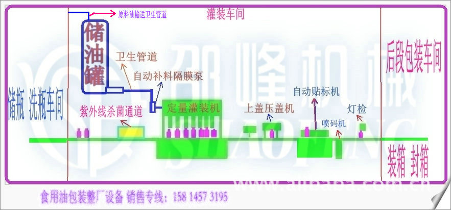 工作流程:人工装料到灌装料斗(或自吸抽料)---调节好灌装容量----人工把食用油瓶送至灌装嘴位置(瓶口对准灌装嘴巴)----踩动脚踏开关(该设备亦可调为自动灌装、视员工快慢调节每次灌装的时间间隙)----灌装完毕(循环工作)