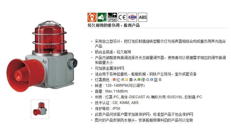 SHD声光组合船舶、重负荷用灯泡 反射镜旋转 警示灯
