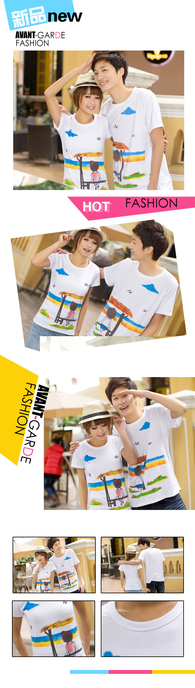 QQ-13情侣装短袖T恤 休闲时尚纯棉短袖t恤 韩国情侣装 情侣t恤