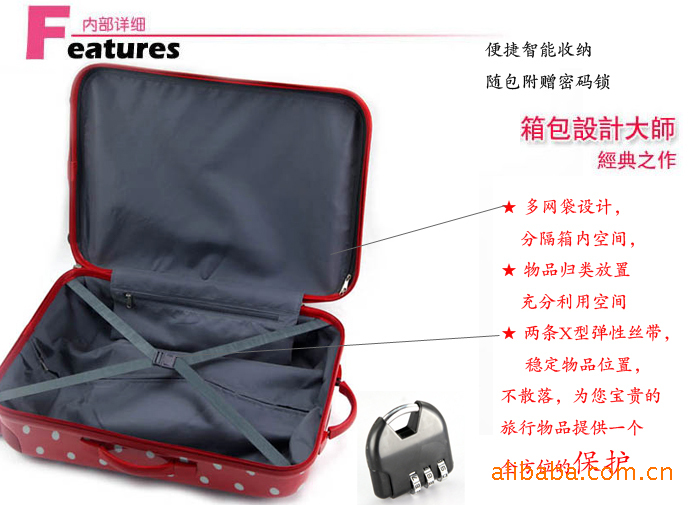 | | | 红白幻彩字母拉杆箱 PC+ABS拉杆箱 拉杆箱厂家 | |