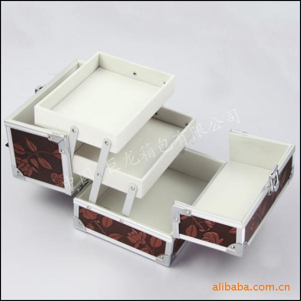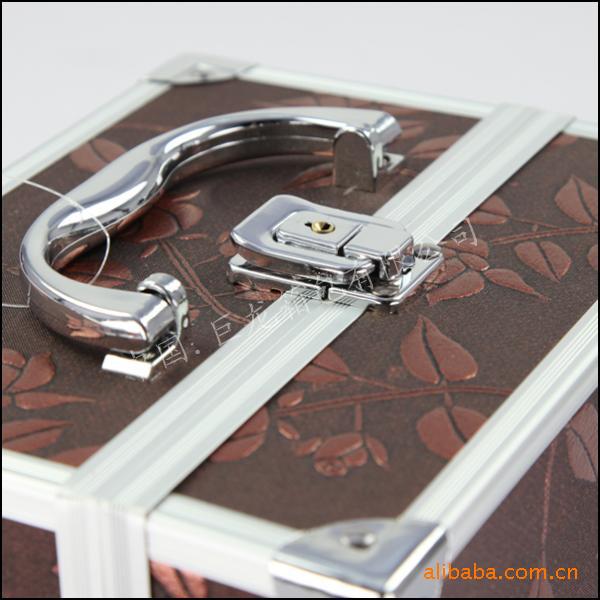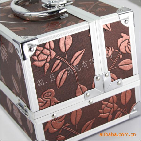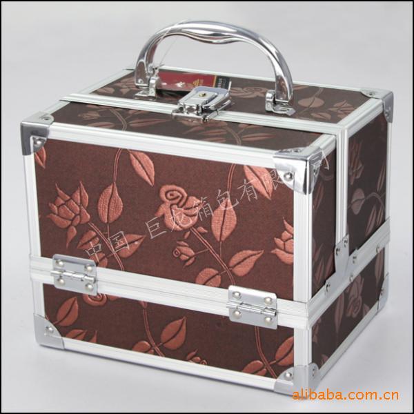 欧美风格化妆箱 首饰盒 巧克力色 双层 布艺 铝,首饰盒,珠宝箱