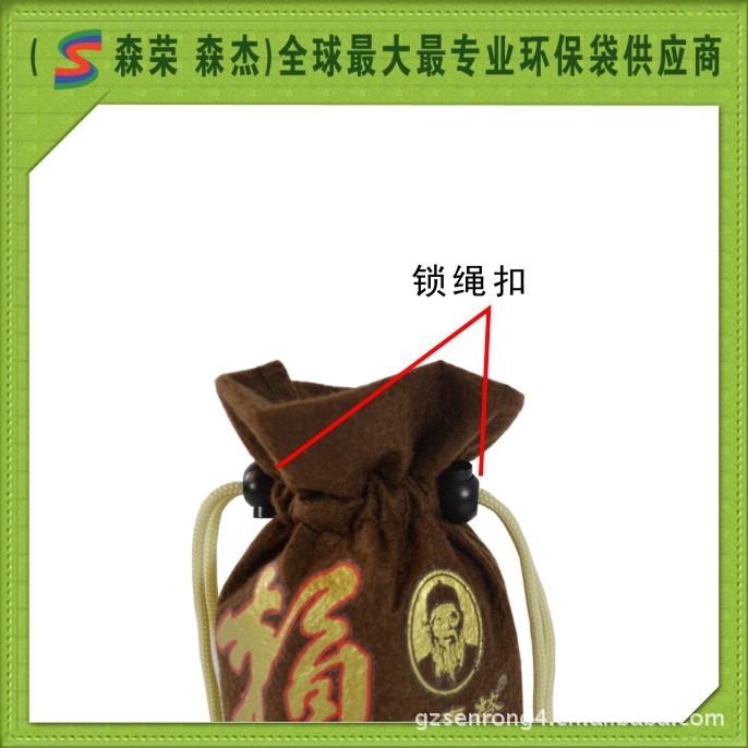 目前国内的环保布类酒袋生产商,专注各种布类酒类、腹膜酒袋、烫金烫银酒袋、印金印银酒袋、绒布酒袋(各种各样的白酒袋、红酒袋、黄酒袋类别)已经通过ISO9001:2000国际质量体系认证, 拥有自主进出口权,一般纳税人资格,是广东省环境保护产业协会会员和广东省无纺布协会会员单位。