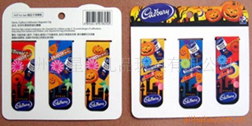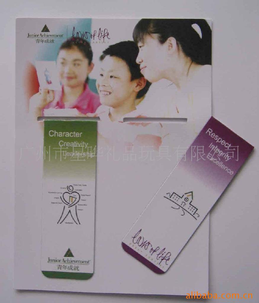 3)磁性书签:采用下面软胶磁铁(对吸磁)+上面铜版纸四色印刷腹膜对折制作而成。