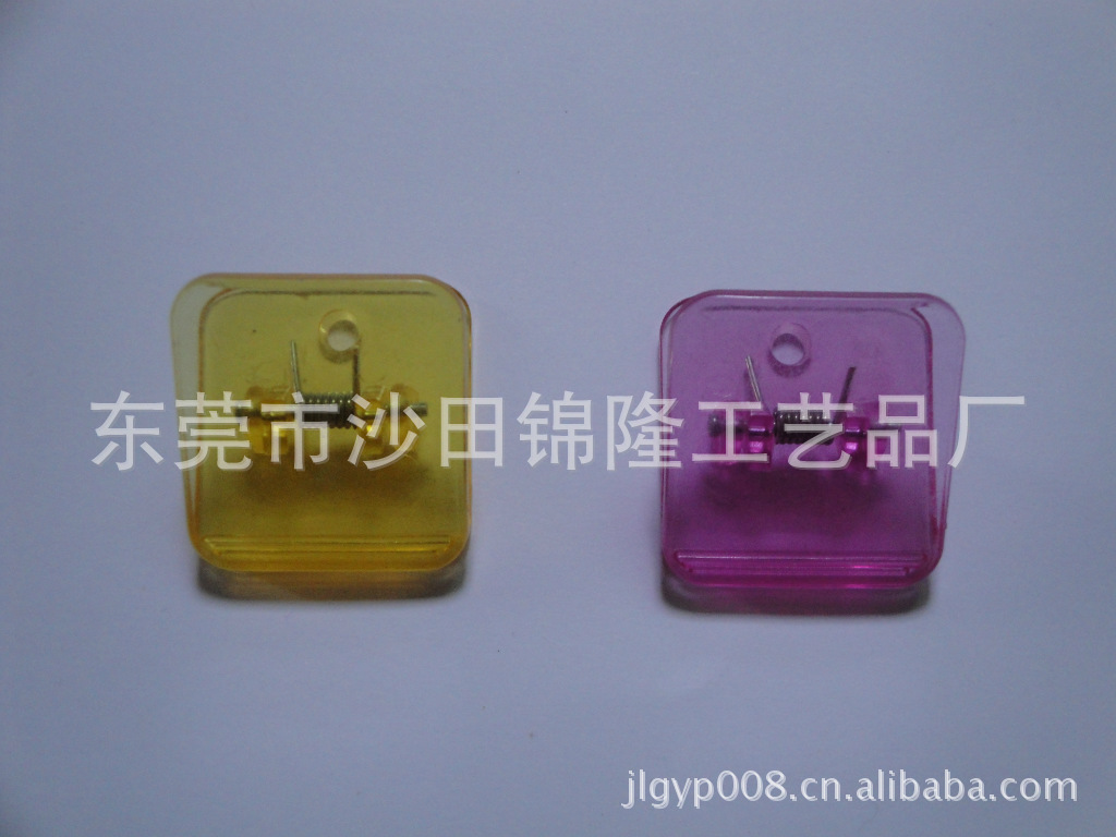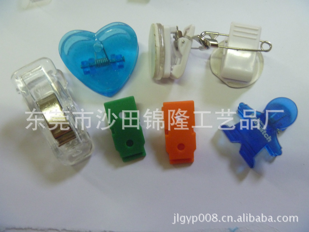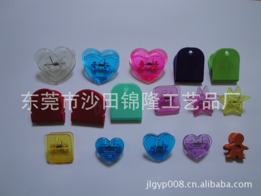 供应各种各样的夹子、塑料吊夹、塑料夹子、翻盖夹、胶水夹、吊扣、鸭嘴夹.夹子固定性强,可牢固的夹住衣物等物品,同时也可配上胸针一起使用,外形美观轻巧,可随意开启,方便实用!