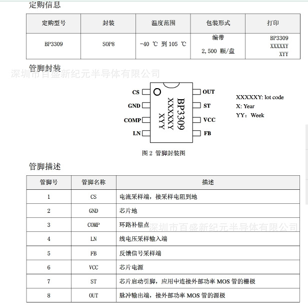BP3309 LED恒流控制IC 全新原装